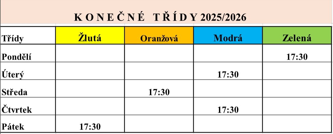 | 12:30 - 13:00 | ODCHOD DĚTÍ PO OBĚDĚ |