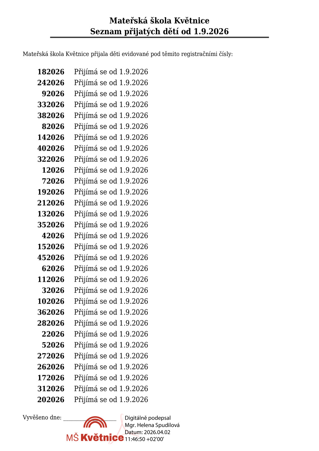 SEZNAM PŘIJATÝCH DĚTÍ DO MŠ NA ŠKOLNÍ ROK 2026_27